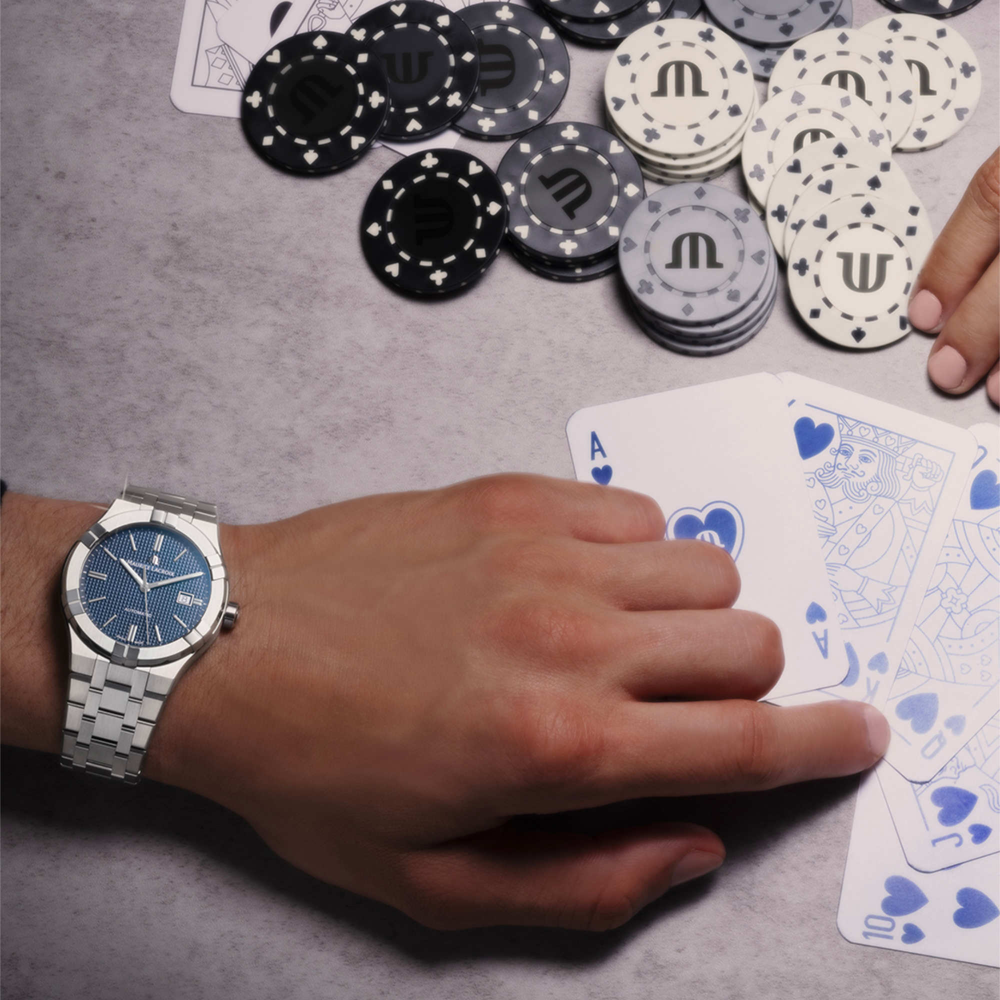 Blau mit Sonnenschliff und „Clous de Paris“ mit Indizes