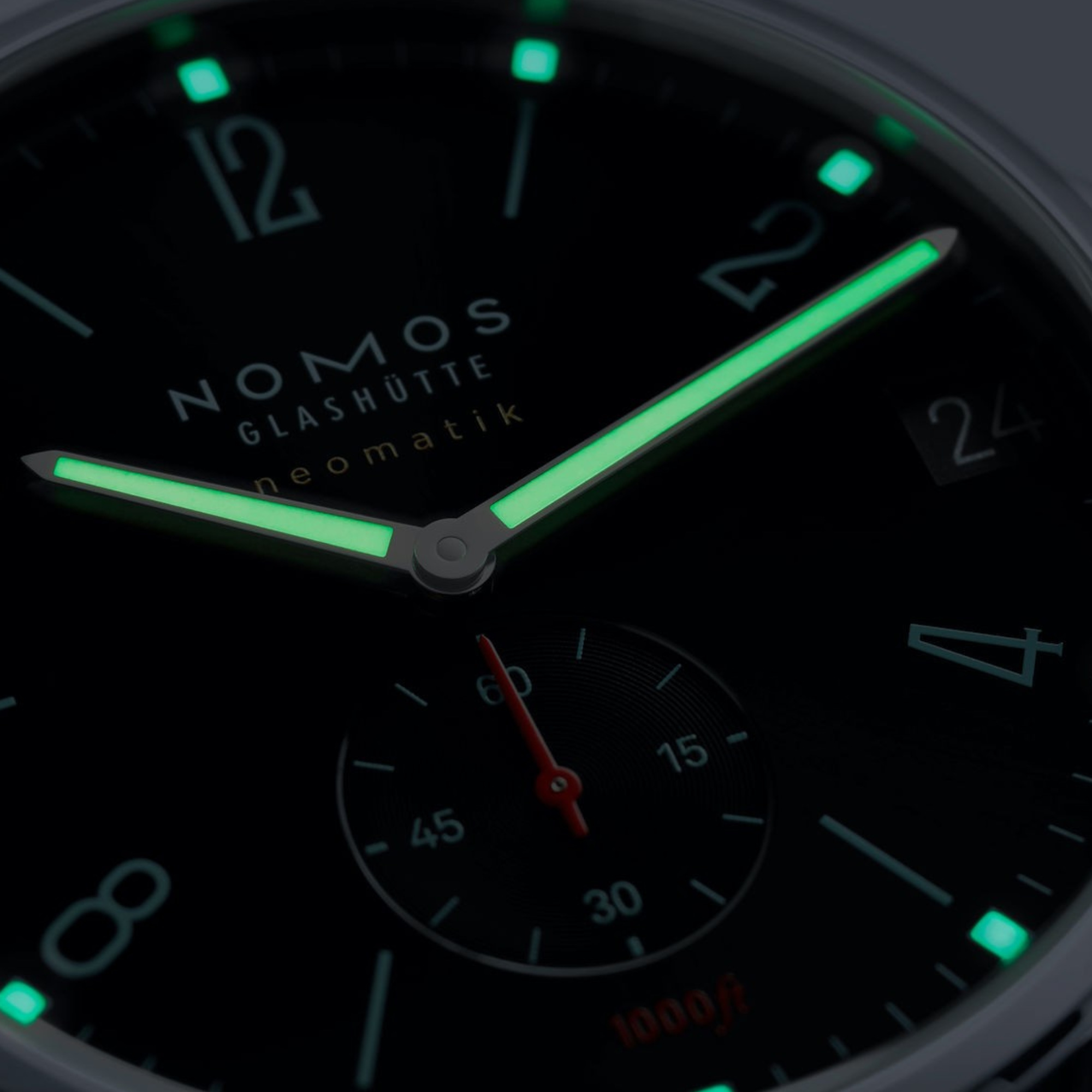 Zeiger: rhodiniert, Stunden- und Minutenzeiger mit Superluminova sandfarben ausgelegt