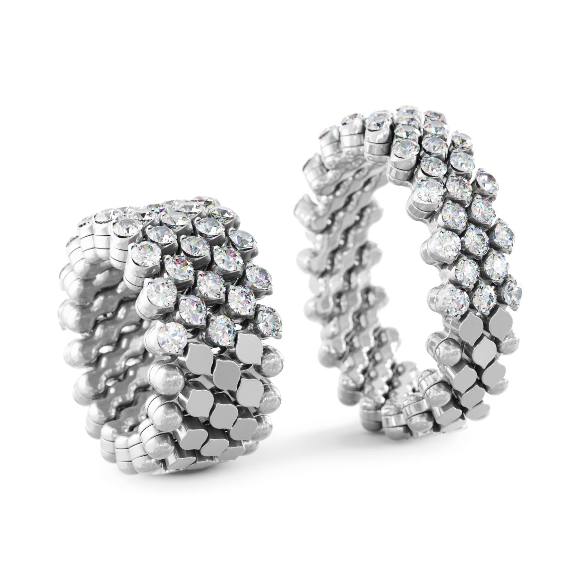 Ref. RMS 5H4 WG WD - Die patentierten Multi-Size Ringe aus der Brevetto-Kollektion sind wahre Verwandlungskünstler. Durch die Kombination aus traditioneller italienischer Juwelenkunst und fortschrittlicher Ingenieurskunst entstehen Ringe, die sich in der Größe spielend leicht verändern lassen. Die vielseitig kombinierbaren Schmuckstücke bestechen außerdem mit ihrer herausragenden Qualität und der Verarbeitung ausschließlich feinster Materialien. Ob als breiter Ring am Ringfinger oder als Eyecatcher am Zeigefinger, die vielseitig kombinierbaren Schmuckstücke aus feinsten Materialien sind in sekundenschnelle wandelbar.