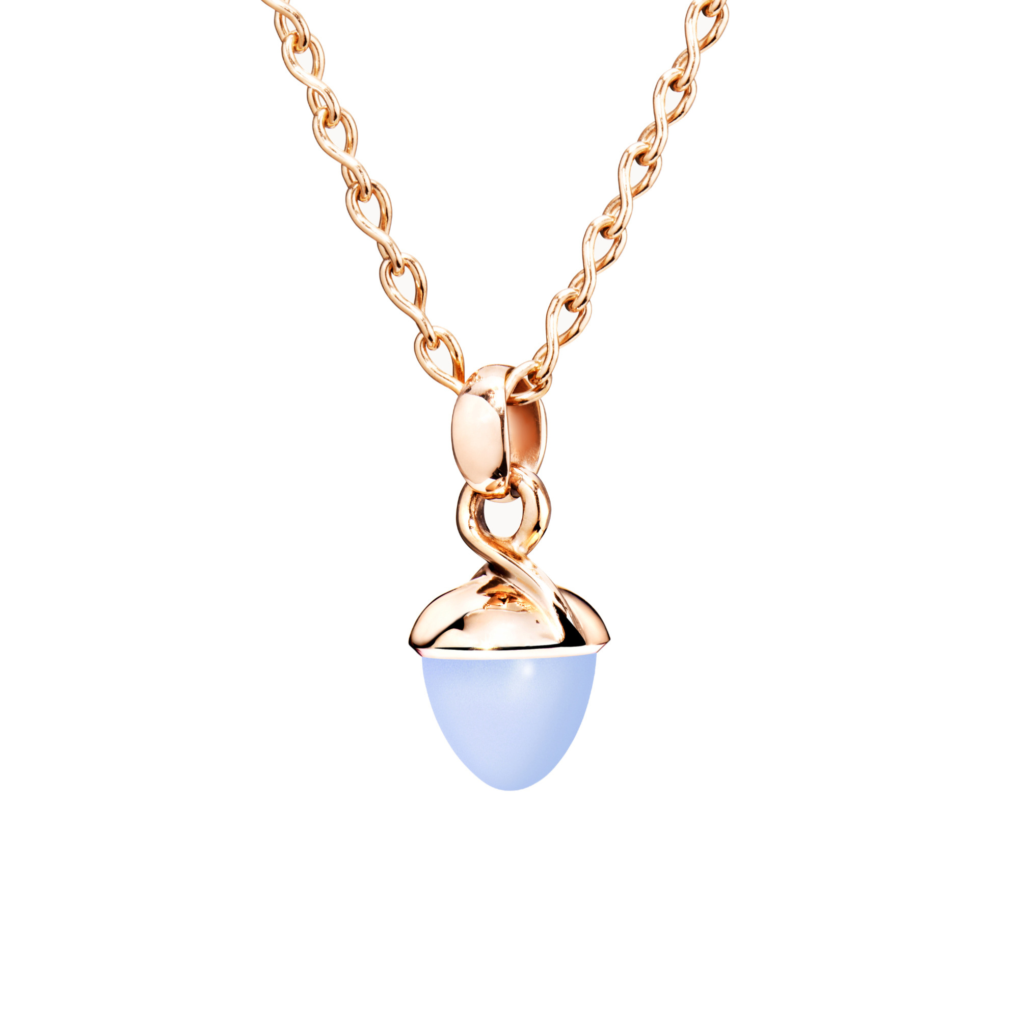 Ref. P-MB-ChBl-rg - Der ikonische MIKADO BOUQUET Anhänger zeigt einen wunderschönen kostbaren blauen Chalcedon in unserer geliebten Kegelform. Dieser mittelgroße Anhänger ist in 18K Gold gefasst und in vielen weiteren schönen Edelsteinkombinationen erhältlich, was zum Sammeln verlockt. Tragen Sie ihn an einer unserer Qualitätsketten oder Lederbändern.